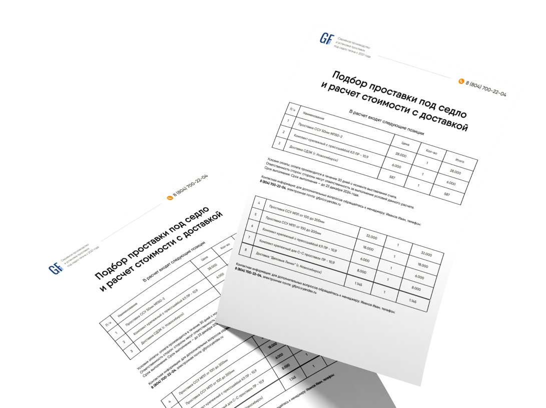 Получите подбор проставки под седло вашего тягача и расчет стоимости с доставкой